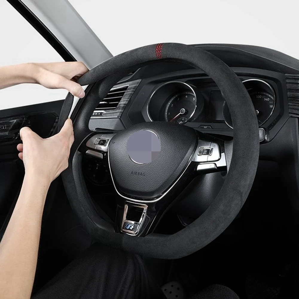 This 38cm suede leather steering wheel cover is designed for BMW models.